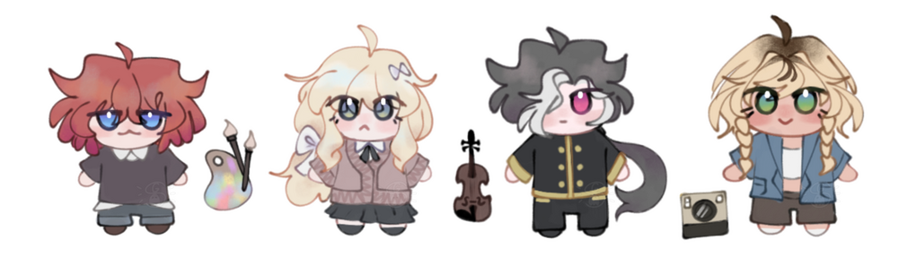 The characters have different designs depending on how the story is told. For now, only the designs from Kriss' books are showcased here.